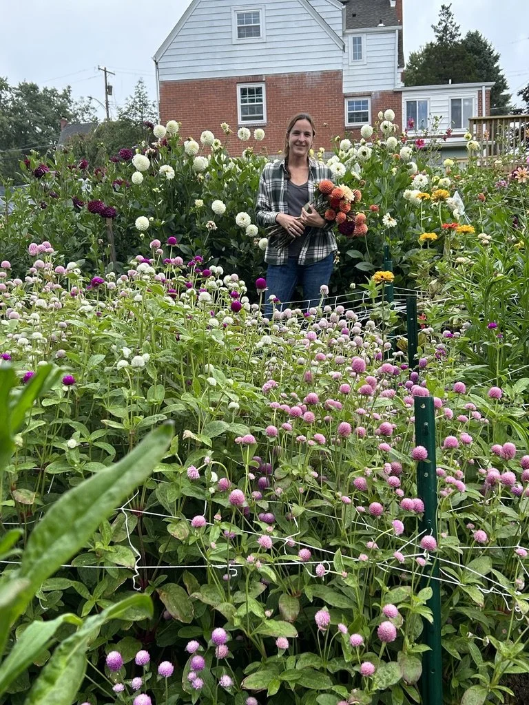 Thank you for visiting our website! We are a small flower business located in a suburb outside of Pittsburgh, dedicated to growing beautiful flowers in our backyard using regenerative practices. We believe in working with nature by focusing on soil health and attracting beneficial bugs.